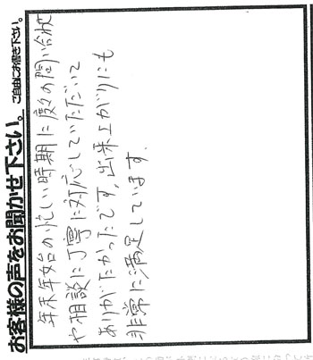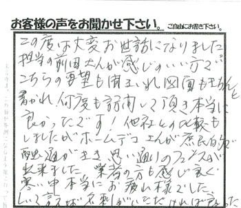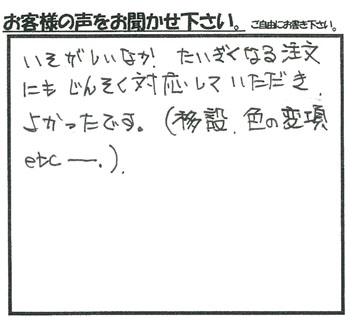 たいぎくなる注文にもじんそく対応していただき、よかったです。