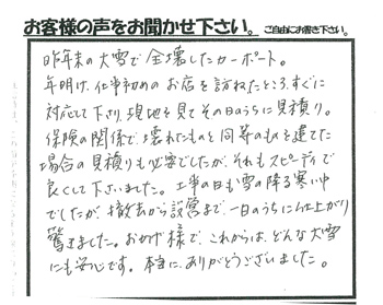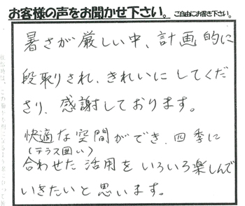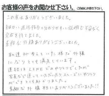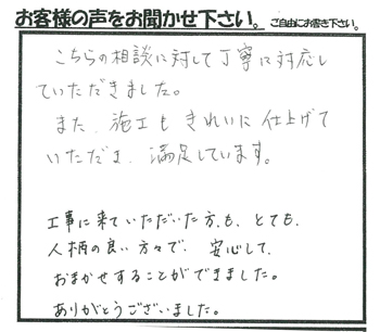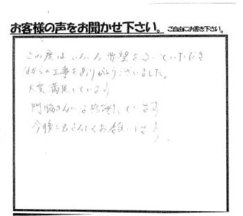 この度はいろいろ要望を聞いていただきながらの工事をありがとうございました。