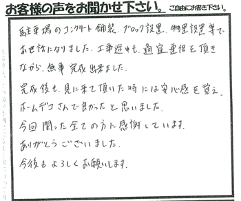 完成後も、見に来て頂いた時には安心感を覚え、ホームデコさんで良かったと思いました。