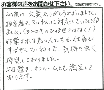 家族の希望に沿って工事していただきありがたかったです。