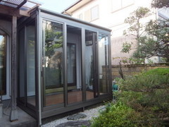 外観にピッタリのオシャレで機能的なサンルームの取付工事となりました。ワンちゃんも喜んでくれていると思います。