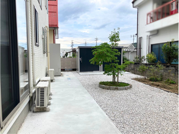 • お庭の維持管理が大変との事で防草対策やフェンスを設置したところ、お庭がスッキリと広く感じられます。