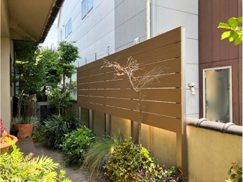 • 既存の木製ラティスからメンテナンスが楽な樹脂タイプのフェンスに交換しました。工事にあたり、花壇のお花もそののままに施工することができました。